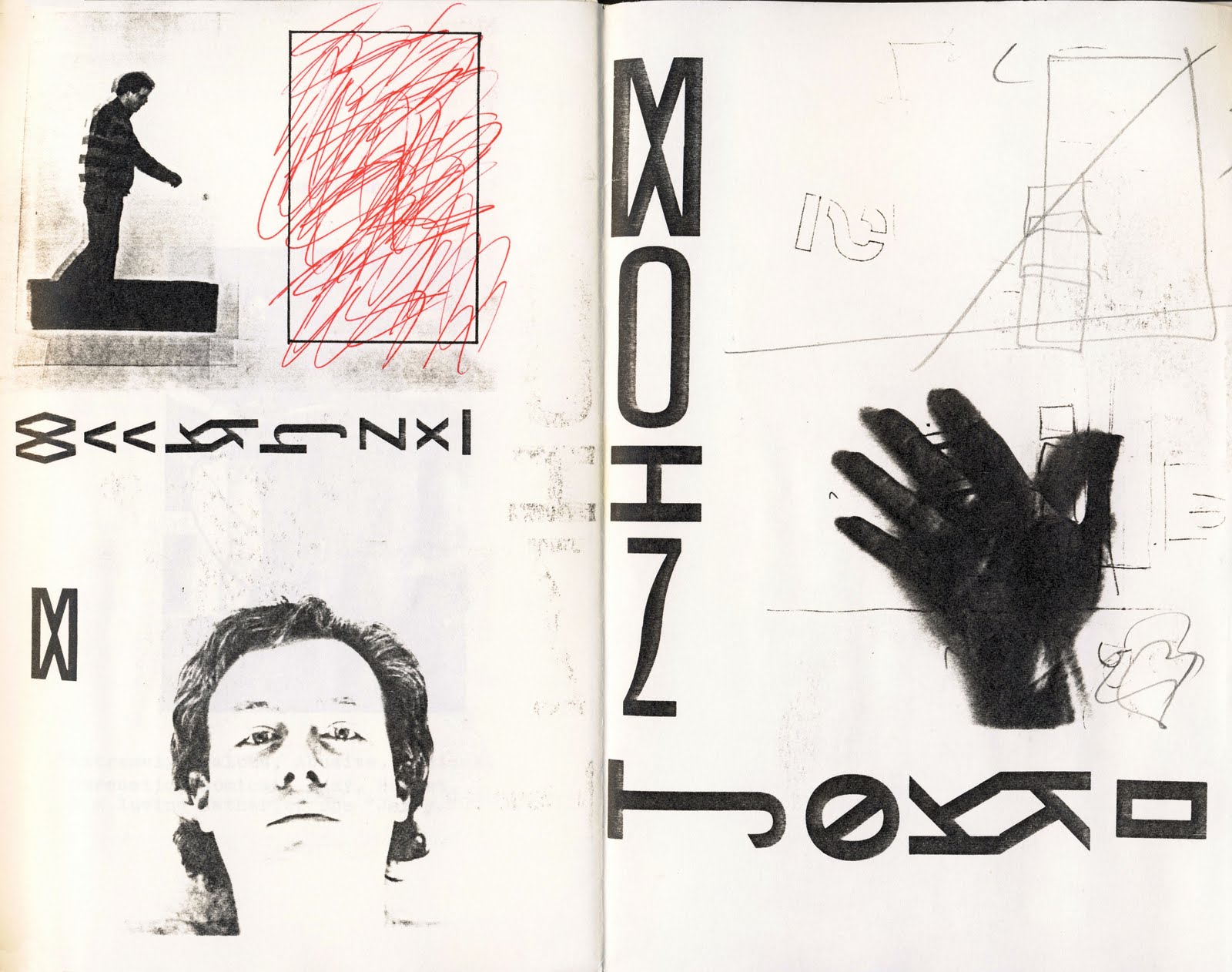 He kept the black, white & dab of red look going well into his DATA project with this second item underneath, a couple of pages taken from the 1983 Dundee book - "View From Urban Dwellings - 2".