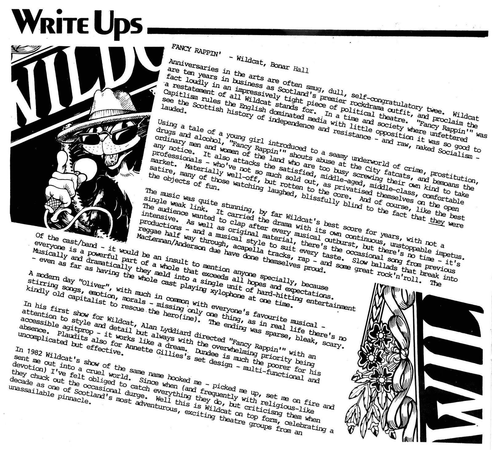 Wildcat theatre company received this rave review in local mag, Street Life, in November 1988.A WEE LOOK BACK AT DUNDEE - 1960's, 1970's & 1980's.