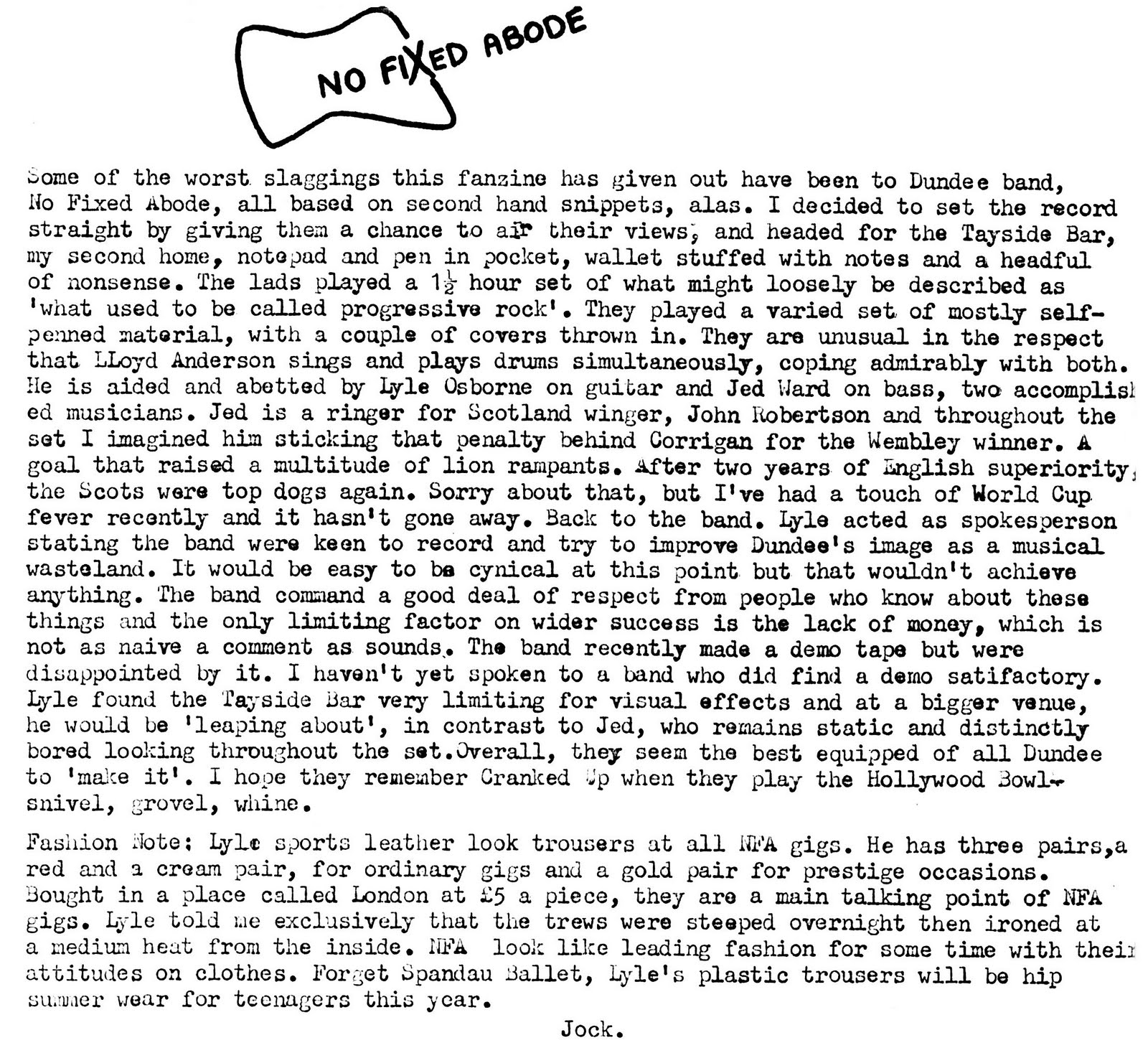 This Deadbeat mag review dates from May 1984 and is for Dundee's electronic whizz kids, Altres. This was a 7 track demo cassette called "Rise" that they released on their own label, Multi-Purpose Productions. It was something a bit different from the usual alternative rock & pop the fanzine covered, Altres making dreamy hypnotic synth based instrumentals. The tape did get a thumbs up from the reviewer though, and reckoned there may be a future for them in TV soundtracks!