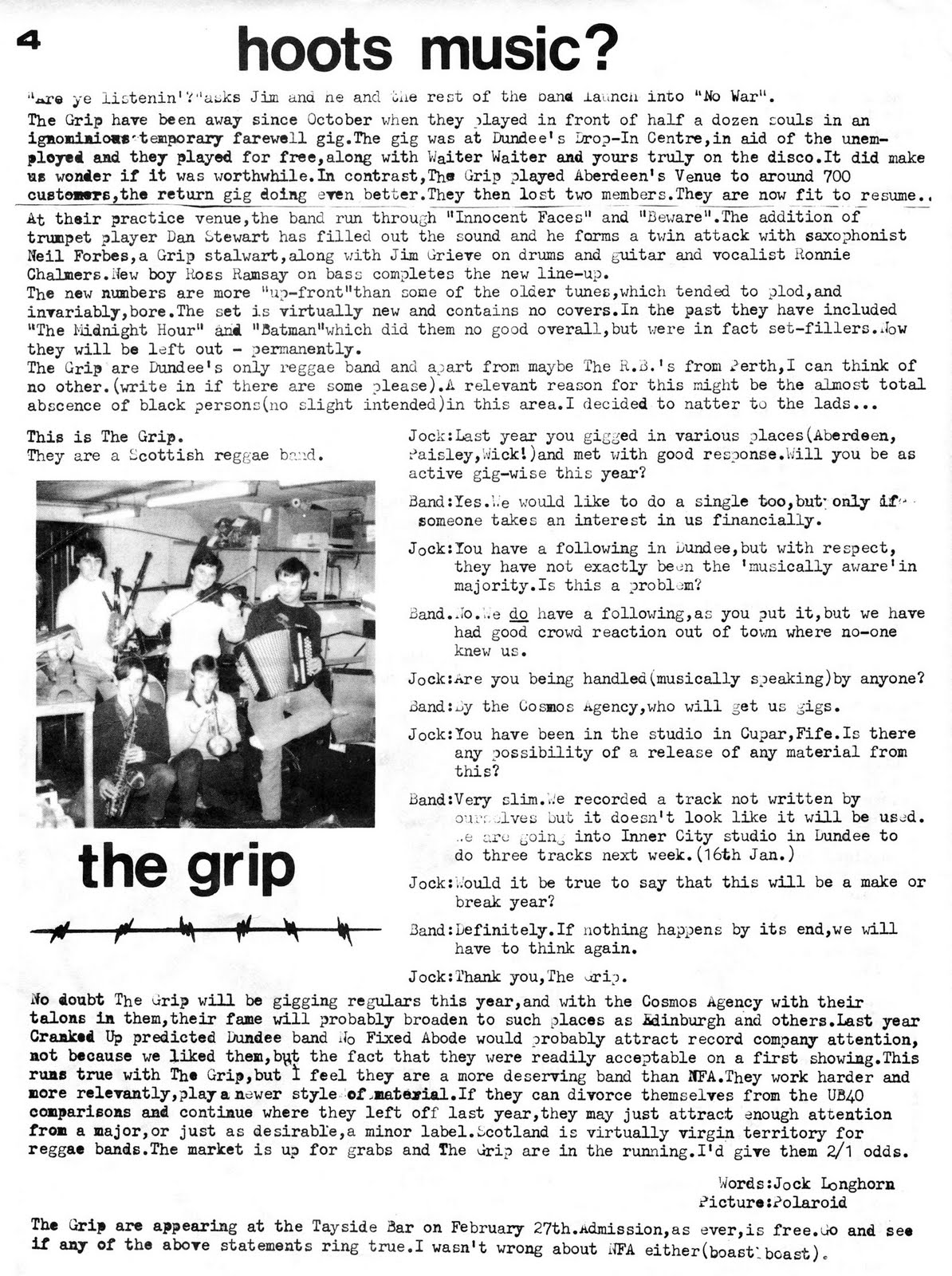 Below it is her feature on the band in Deadbeat mag, including her skilful sketch of the guys.